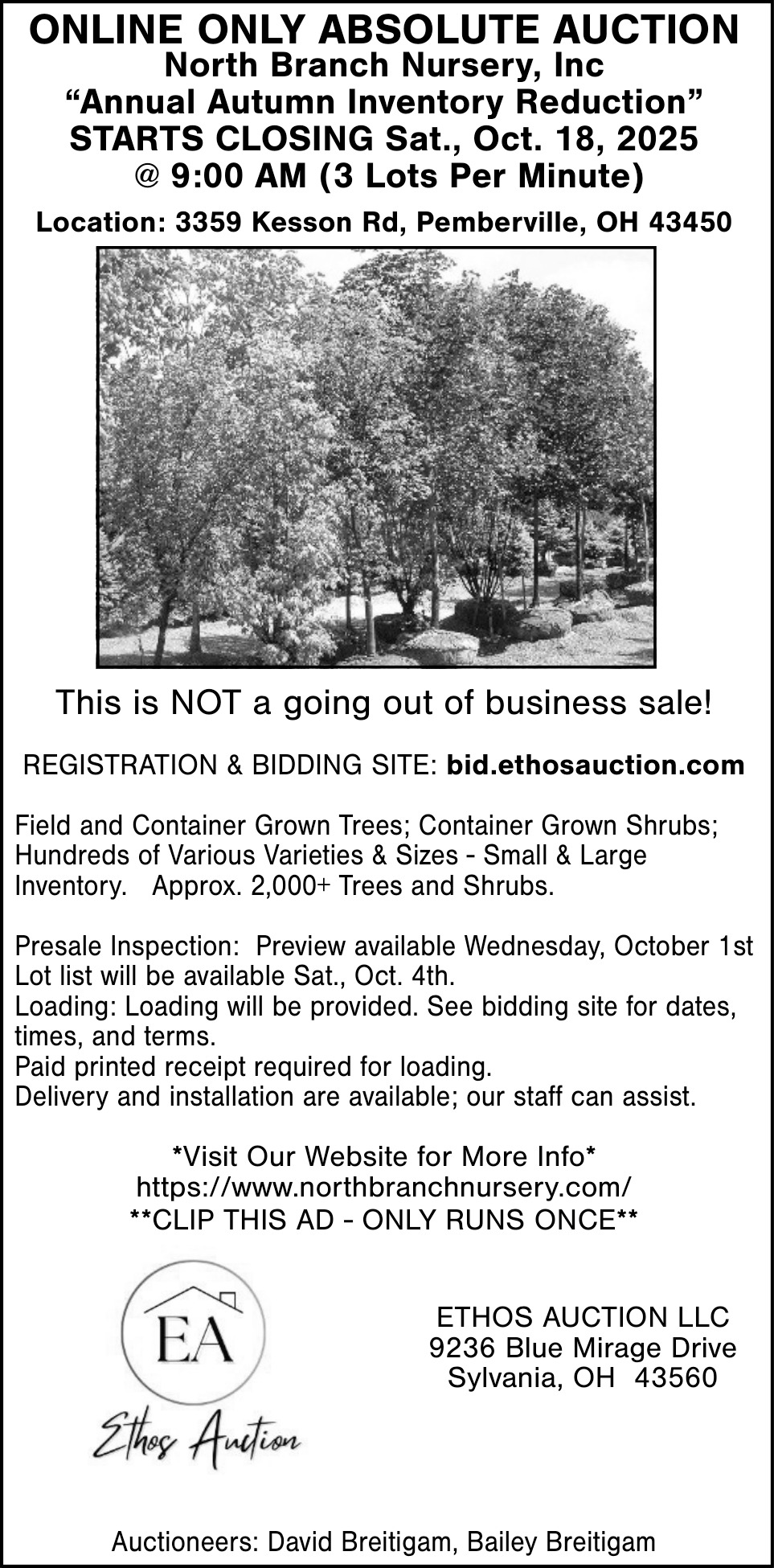 Oct 04, 2025. Ethos Auction LLC Auctions Ads from Sentinel-Tribune