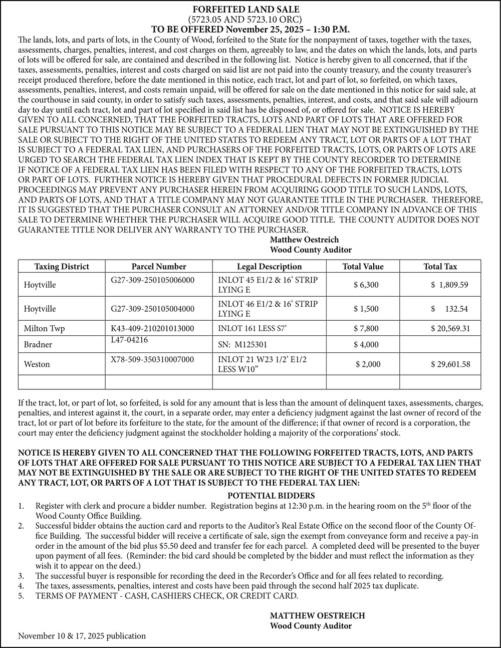 Nov 12, 2025. Wood County Government Ads from Sentinel-Tribune